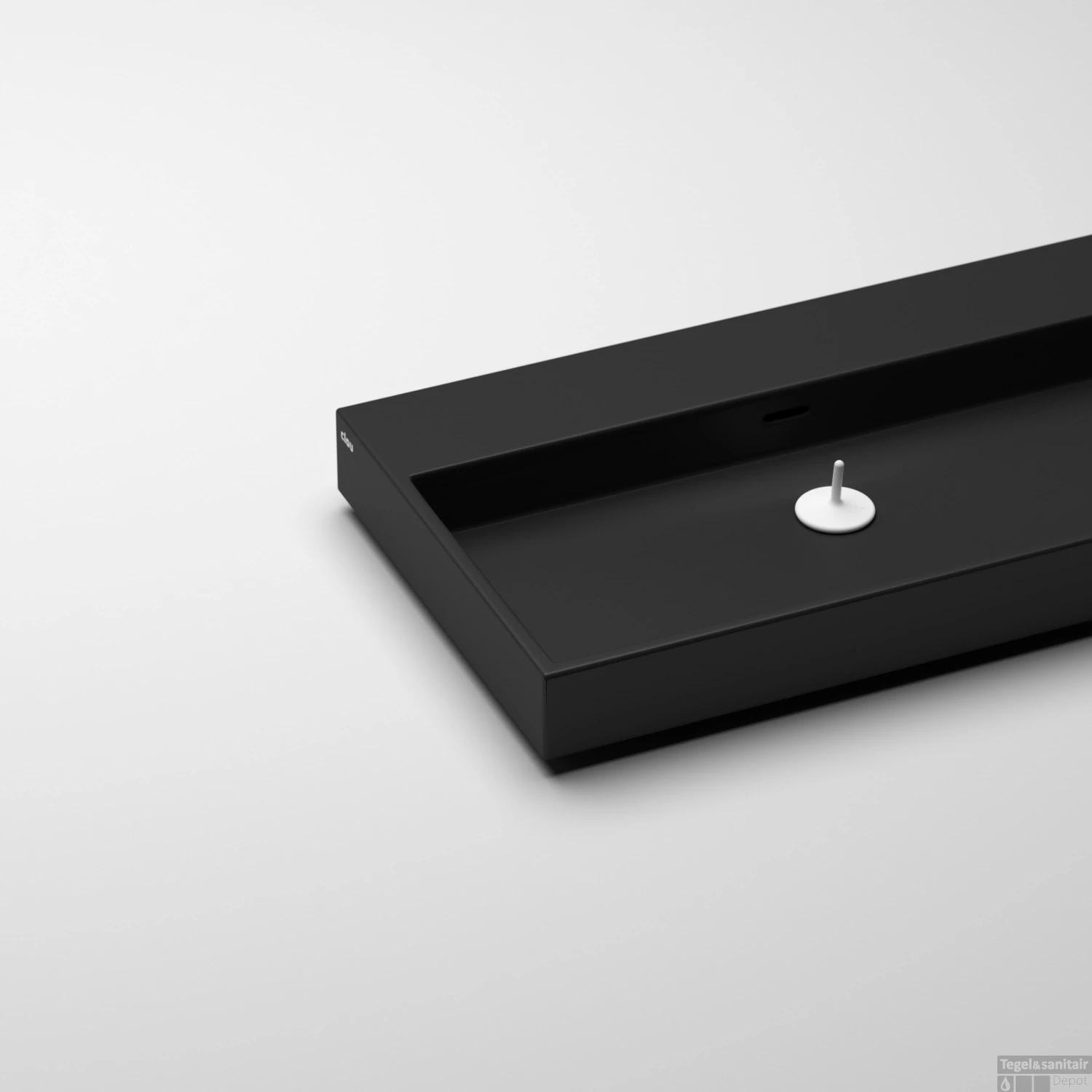 Wastafel Clou Wash Me 90x42x8 cm Keramiek Mat Zwart met 3 voorbewerkte kraangaten zonder plug