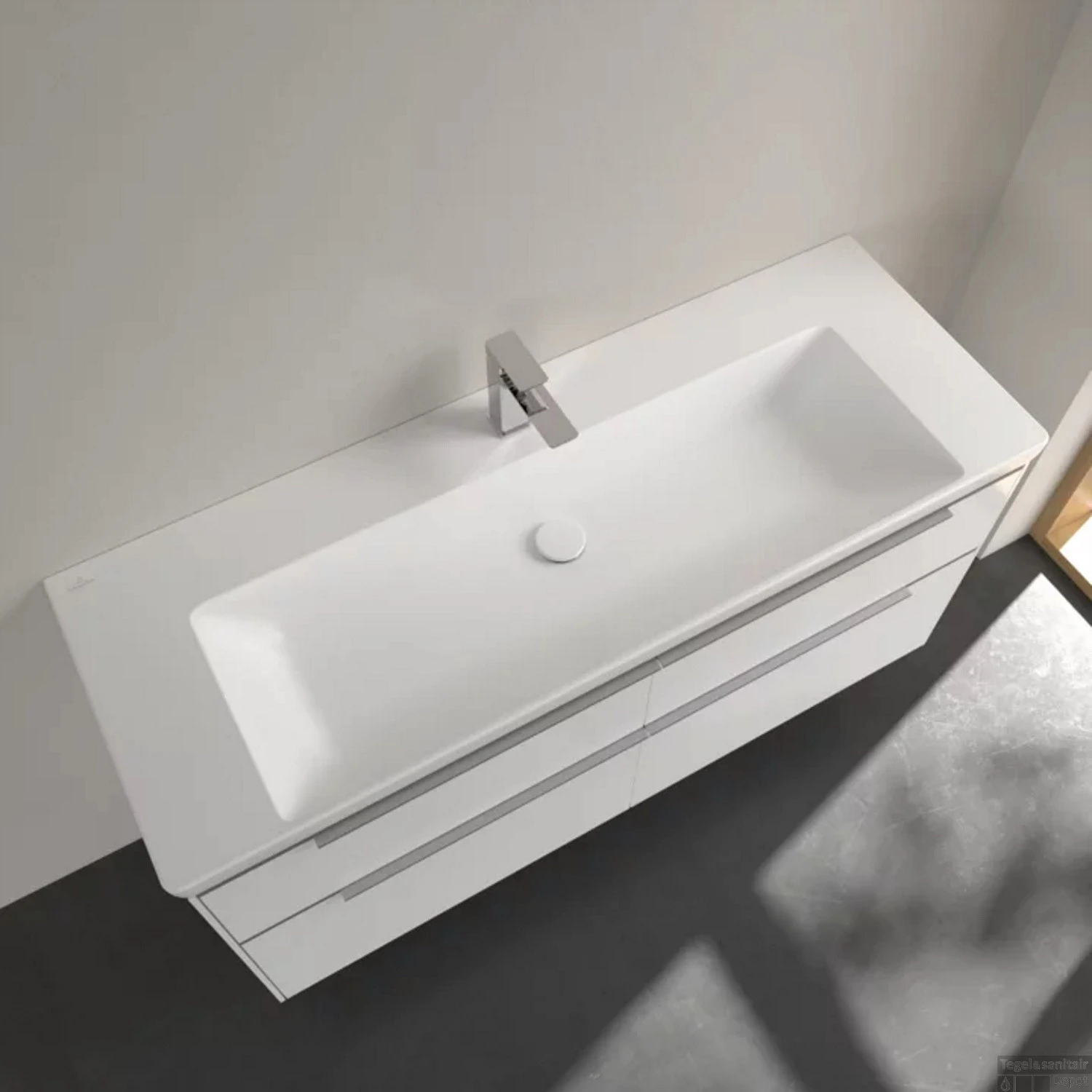 Wastafel Villeroy & Boch Subway 3.0 Met CeramicPlus 1 Kraangat Zonder Overloop 130x47x16.5 cm Stone White