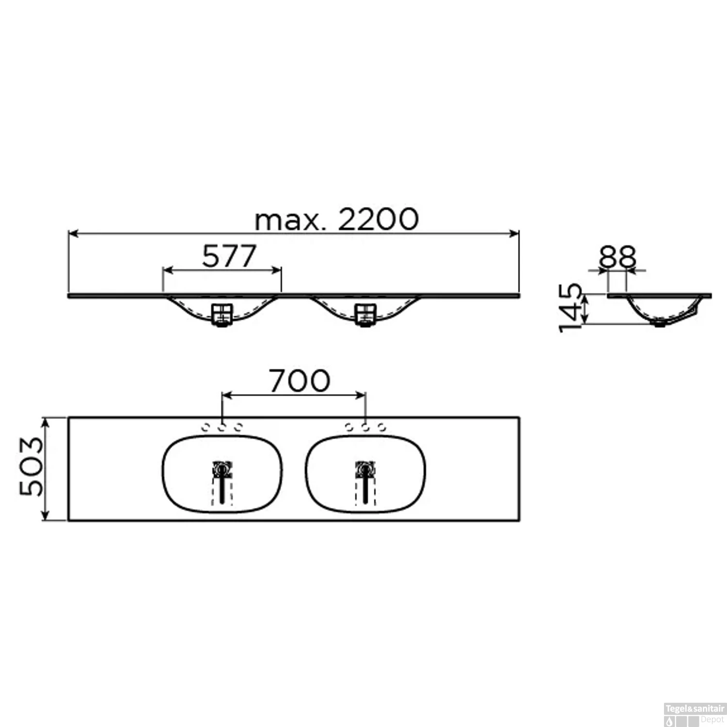 Wastafelblad Clou Hammock Dubbele Waskom Links 180cm Mat Wit