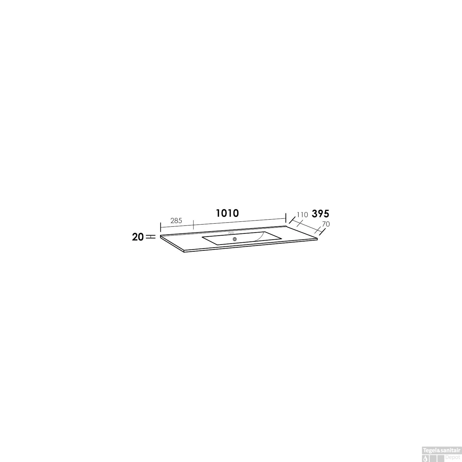 Specificaties Wastafelblad Exclusive Line 100 Kera Small 1 Kraangat: