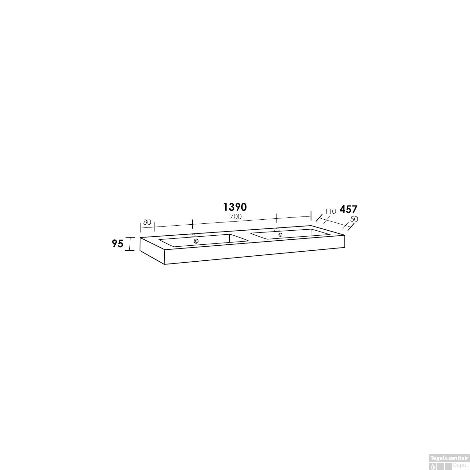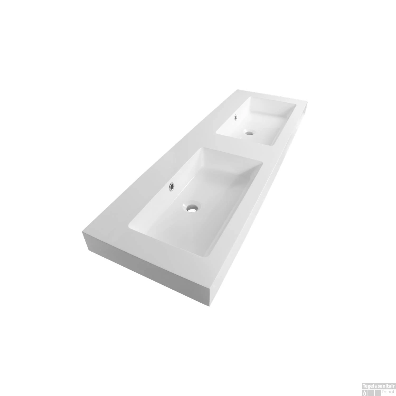 Het Florence wastafelblad is uitgevoerd in wit hoogglans gepolijst mineraalmarmer. De wastafel is 139 cm breed, heeft twee rechthoekige wasbakken met elk een overloop en het kan mooi gecombineerd worden met twee inbouwkranen. Verder geven de 9.5 cm hoge rand en hoekige vormen de wastafel een moderne look.