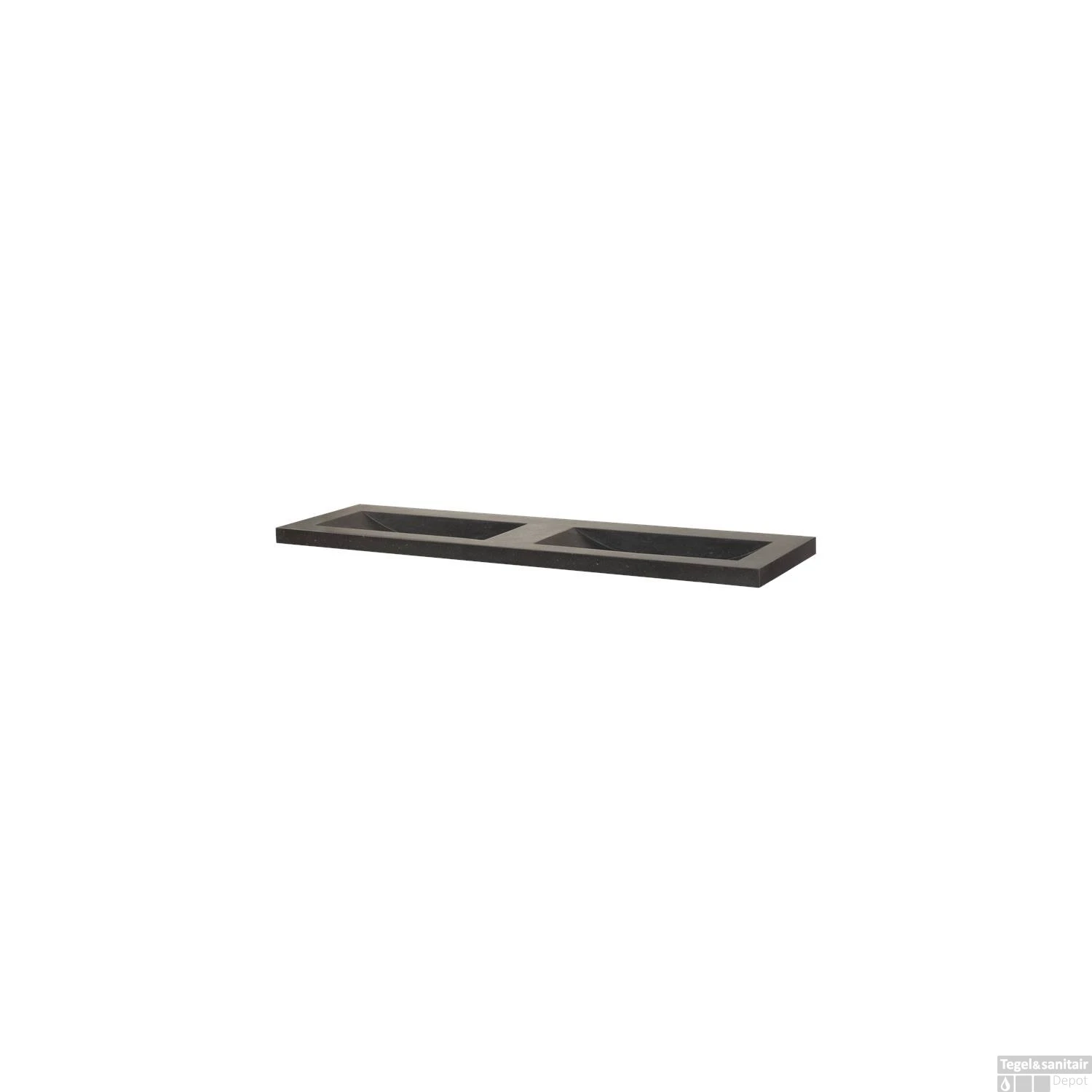 Het Corestone wastafelblad is uitgevoerd in natuursteen. De wastafel is 160.6 cm breed, heeft twee rechthoekige wasbakken en is mooi te combineren met twee inbouwkranen. Verder geven de 5 cm hoge rand en hoekige vormen de wastafel een moderne look.