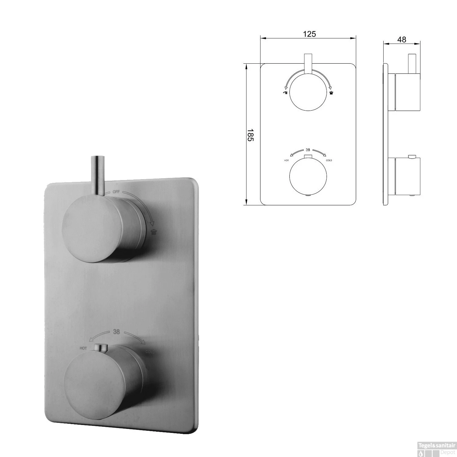 Wiesbaden Regendouche Inbouw | Caral | Rechthoek Met Muuruitloop | Inbouw | RVS (incl.inbouwdelen)